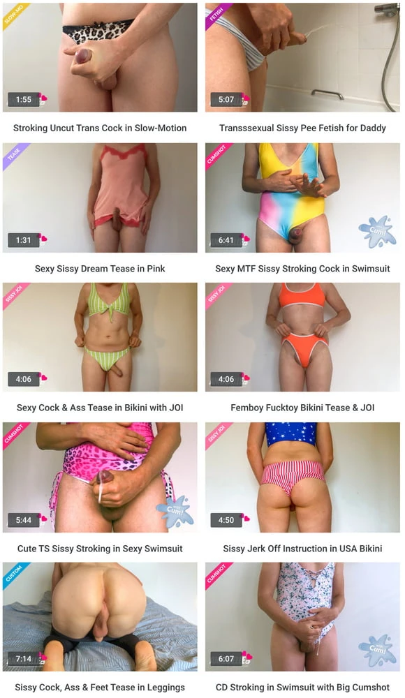 I am a Naughty Crossdressing Sissy and love to show you my wet clit and tight ass in cute panties and swimsuits..